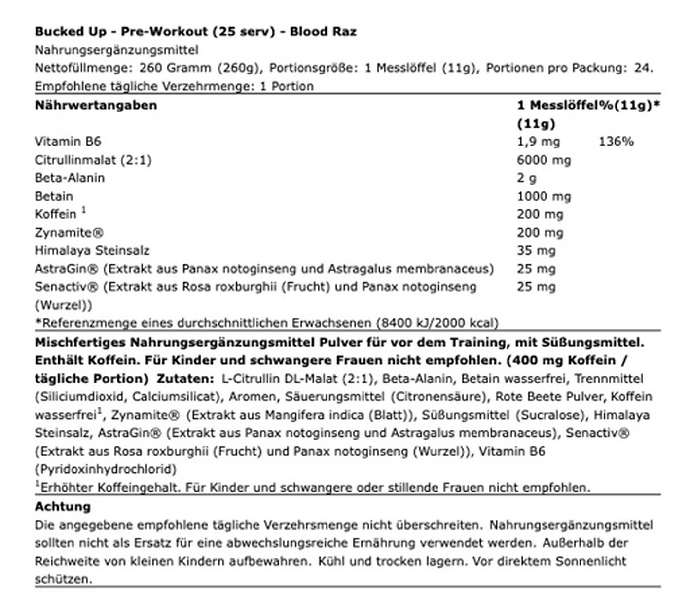 Weiterführende Links zu "Bucked Up Pre-Workout 260g (25 Serv.)"
