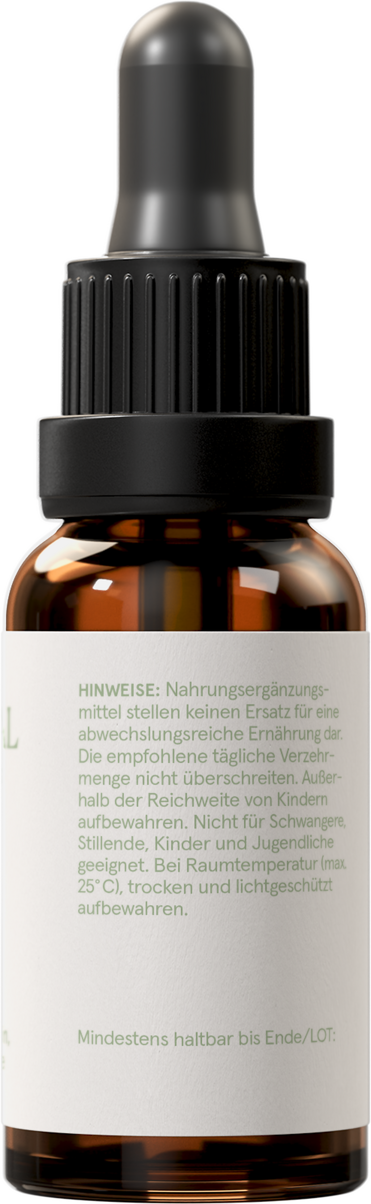 Warnheinweise: Nahrungsergänzungsmittel stellen keinen Ersatz für abwechslungsreiche Ernährung dar. Eine ausgewogene Ernährung und gesunde Lebensweise sind wichtig. Die empfohlene tägliche Verzehrmenge nicht überschreiten. Außerhalb der Reichweite von kleinen Kindern au, Nicht geeignet für Kinder, Schwangere und Stillende. Personen mit bestehenden Erkrankungen oder unter ärztlicher Behandlung sollten vor dem Verzehr ärztlichen Rat einholen.