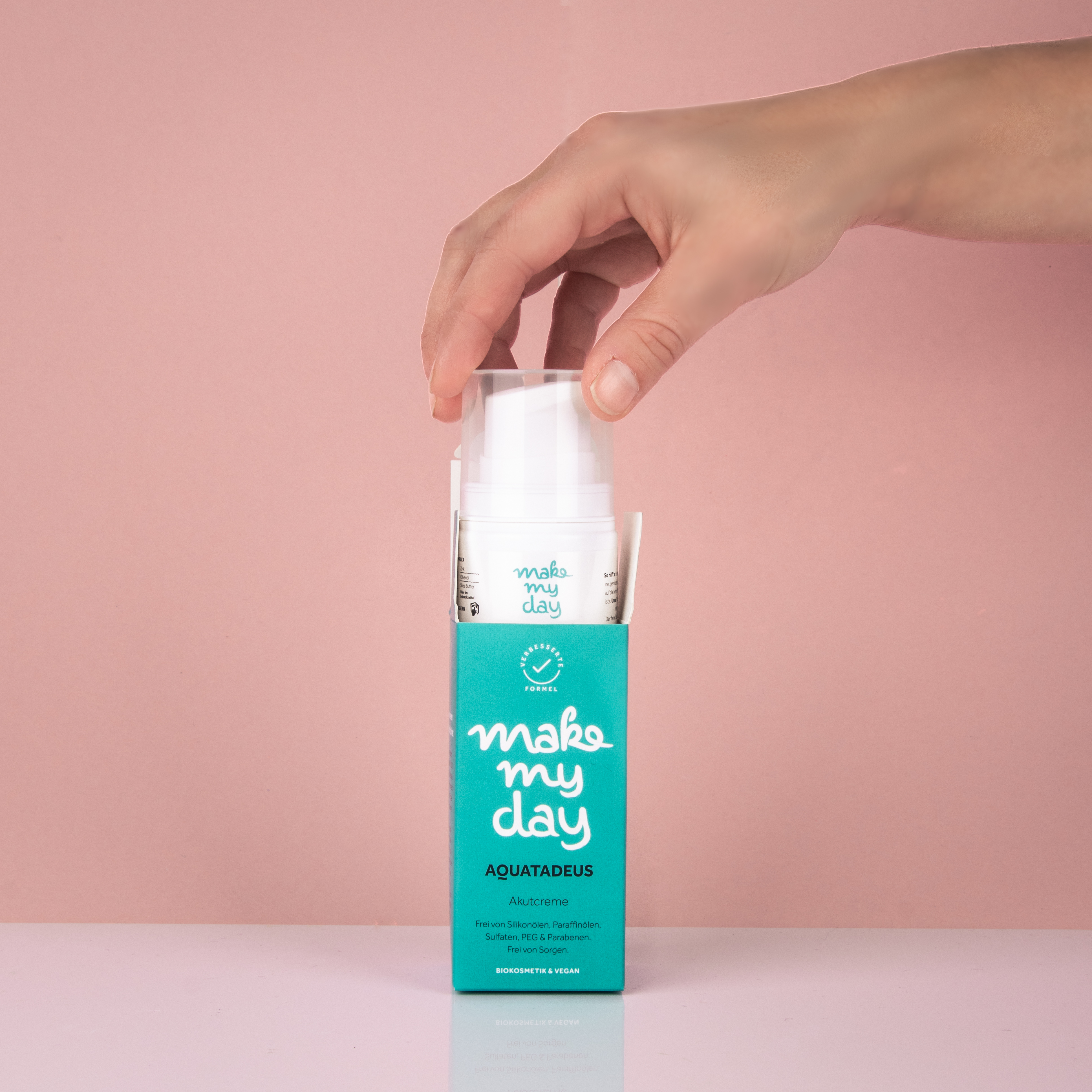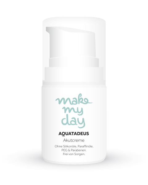 Die betroffenen Hautstellen morgens und abends eincremen. Die Aquatadeus Akutcreme kann regelmäßig bzw. dauerhaft angewendet werden. Um bestmögliche Ergebnisse zu erzielen, wird die Akutcreme mit dem Aquatadeus Heilwasser* kombiniert. Das Heilwasser einfach aufsprühen, kurz einziehen lassen und danach die Akutcreme auftragen.