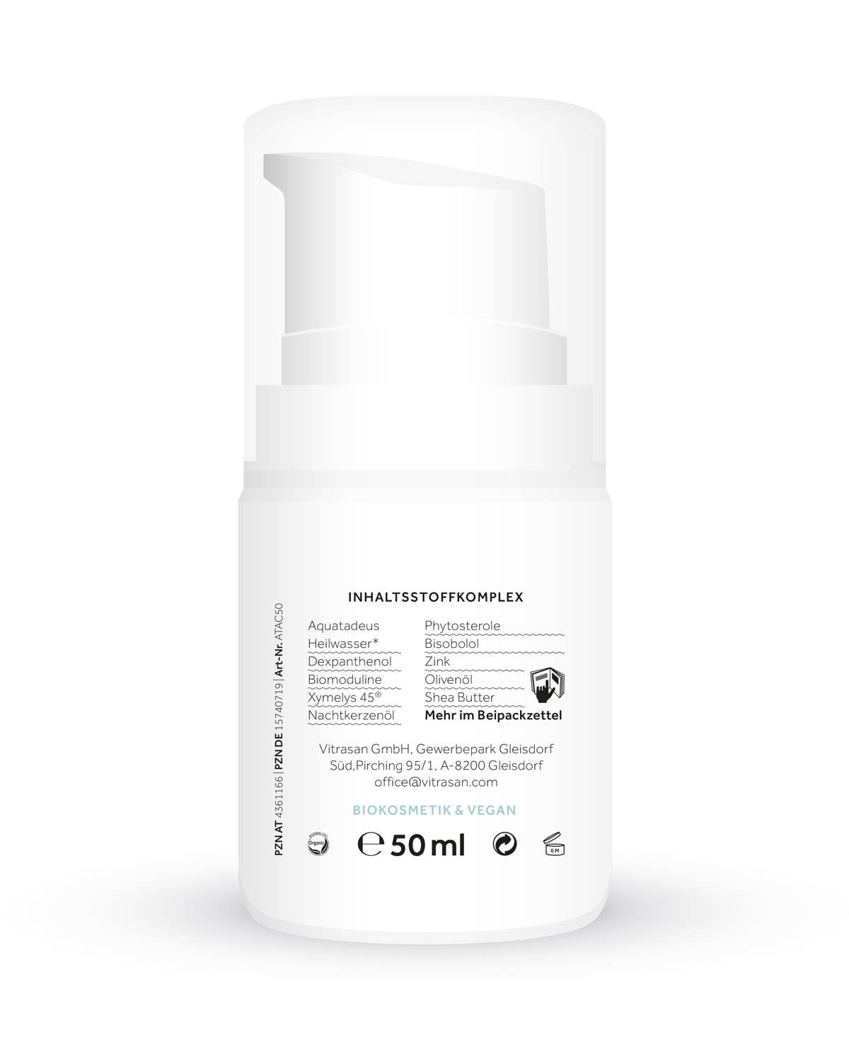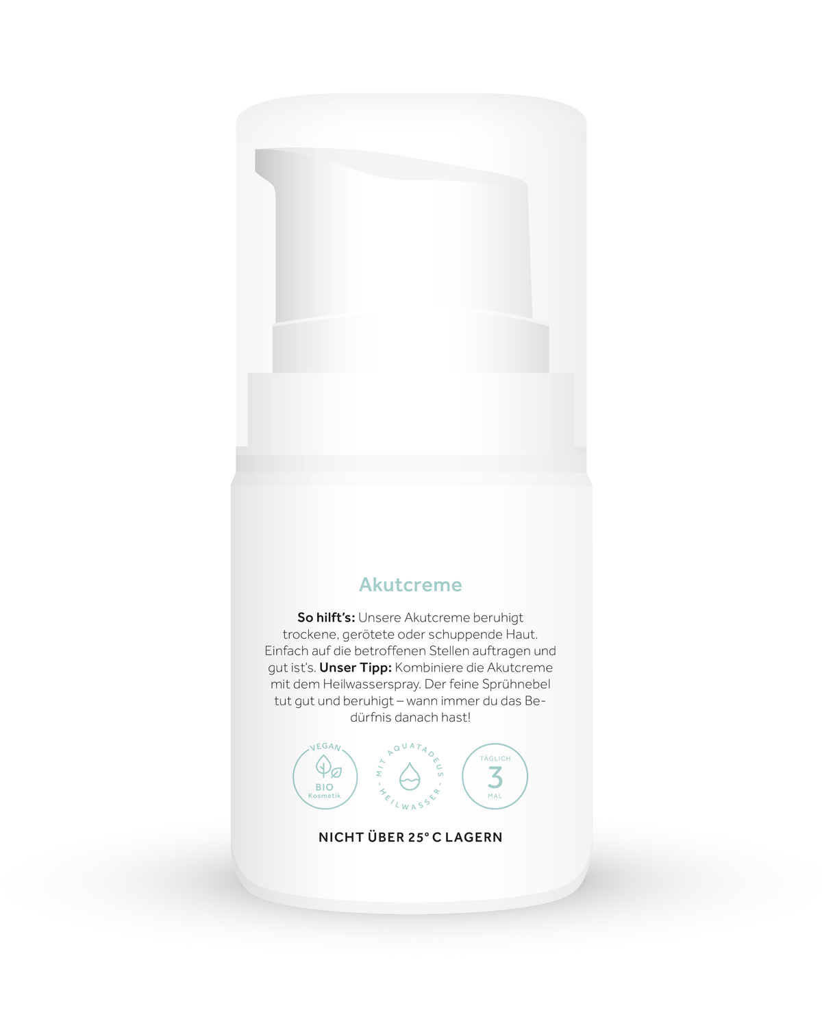 Neben dem Heilwasser (10 %) beinhaltet die Akutcreme effektive, gut dokumentierte und bewährte Wirkstoffe aus der medizinischen Praxis. Der Aktivstoffkomplex ergänzt die Wirkung des Heilwassers optimal und versorgt die Haut mit den notwendigen Lipiden.
