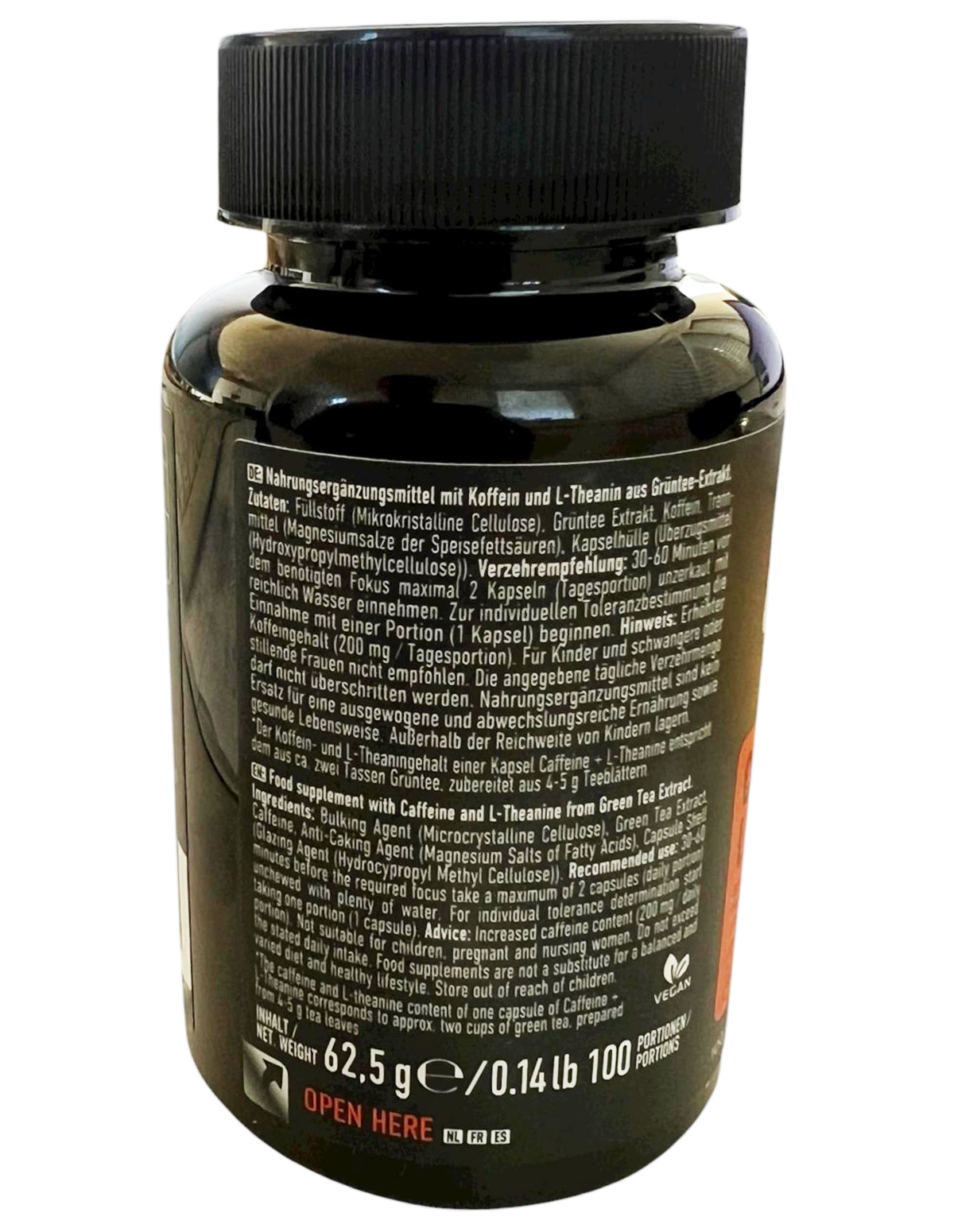 - Nahrungsergänzungsmittel mit Koffein und L-Theanin aus Grüntee-Extrakt