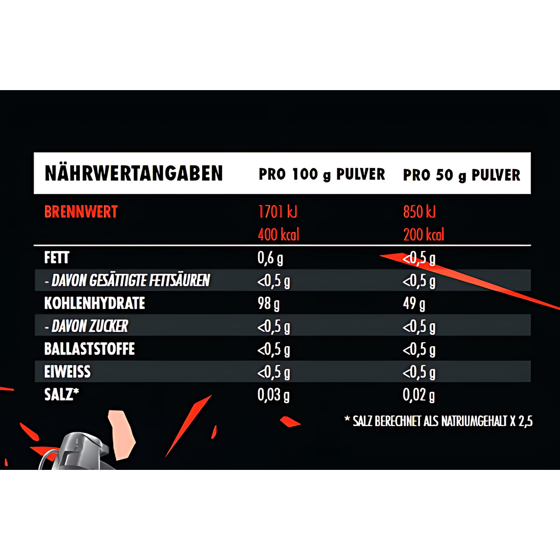 Nährwertepro Portion 50 g Pulverpro 100 g Pulver