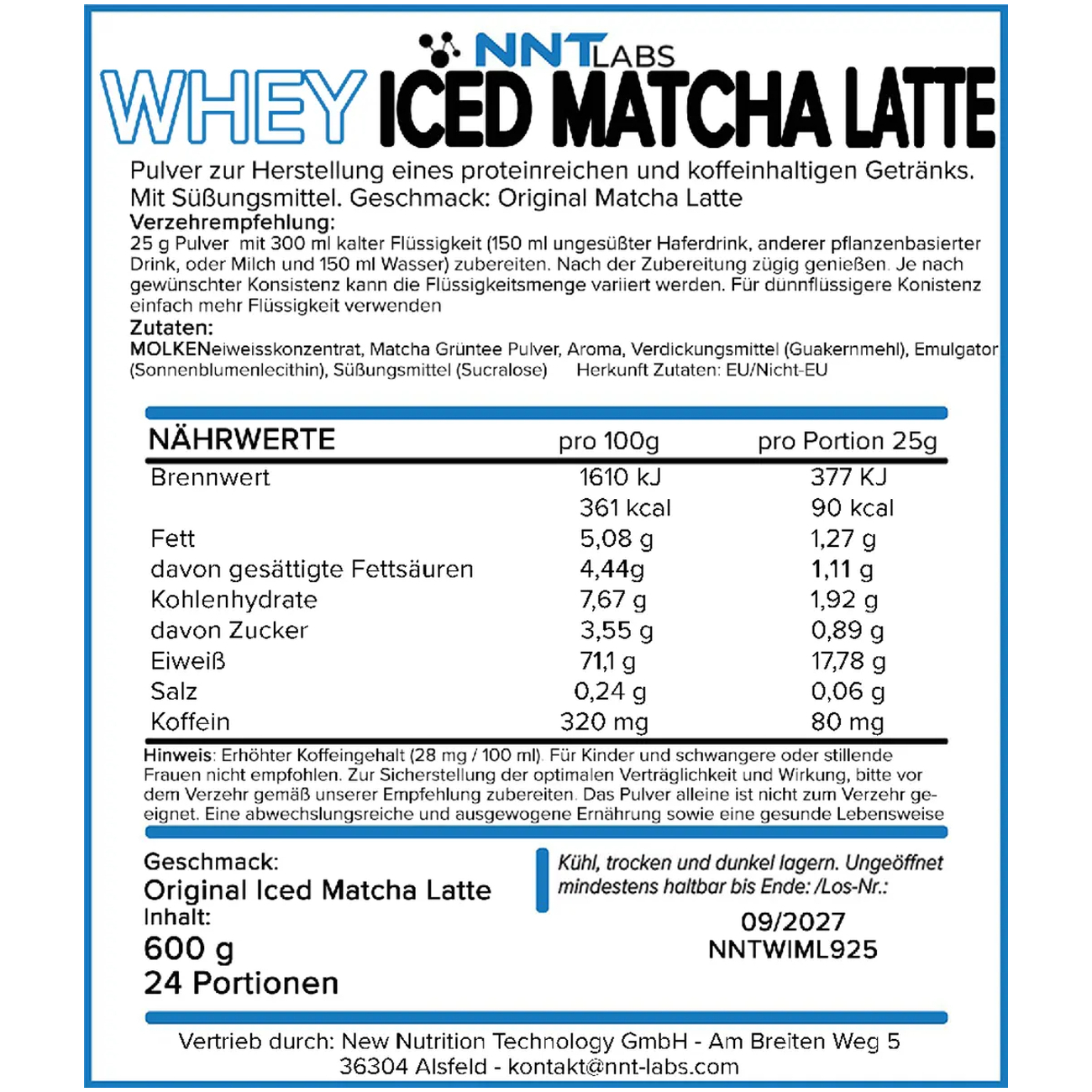 NNT Whey Iced Matcha Latte 600g – Protein mit erfrischendem Geschmack