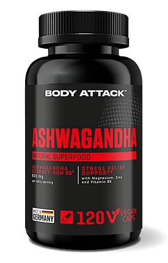 Das ultimative Superfood für deine beste Performance hat einen Namen: ASHWAGANDHA Kapseln von BODY ATTACK. Wir haben hochdosiertes, veganes ASHWAGANDHA KSM-66 mit 600 mg des einzigartigen Markenrohstoffs pro Tagesportion für dich! Die ayurvedische Heilkunst baut schon seit langer Zeit auf den indischen Ginseng, da er biologischen Stress verringern kann. Für deinen Muskelaufbau benötigst du optimale Erholung und die bekommst du mit zusätzlichem Magnesium, Zink und Vitamin B6, die in jeder deiner ASHWAGANDHA Kapseln enthalten sind!