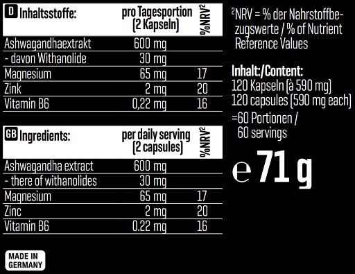 - 600 mg ASHWAGANDHA pro Tagesportion