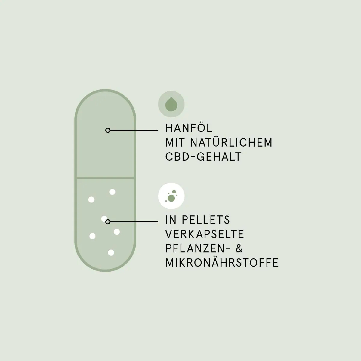 Umgeben von der kraftvollen Basis aus Hanf- und Nachtkerzenöl enthalten die Pellets eine Mischung aus Pflanzen- und Mikronährstoffen. Vitamin B6 unterstützt die Regulierung der Hormontätigkeit, Rotklee ist reich an Isoflavonen. Salbei wird als natürlicher Begleiter bei Schweißausbrüchen geschätzt. Hanföl mit seinen ausgleichenden Effekten rundet die Rezeptur ab und trägt zu mehr Entspannung im Wechsel bei - als Voraussetzung für eine erholsame Nachtruhe und mehr Wohlbefinden.