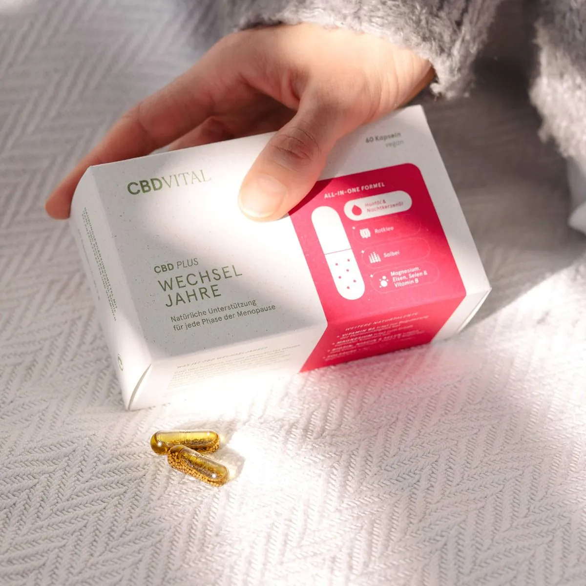 Hitzewallungen, nächtliche Schweißausbrüche und Stimmungsschwankungen in den Wechseljahren können die Lebensqualität erheblich beeinträchtigen. CBDplus Wechseljahre bietet Frauen in dieser Phase eine ganzheitliche Unterstützung durch die innovative Pellets-System-Technologie. Die spezielle Formel kombiniert erstmals hochwertige Öle wie Hanföl und Nachtkerzenöl mit ausgewählten Pflanzenextrakten in einer Kapsel zu einer umfassenden Komplettlösung.