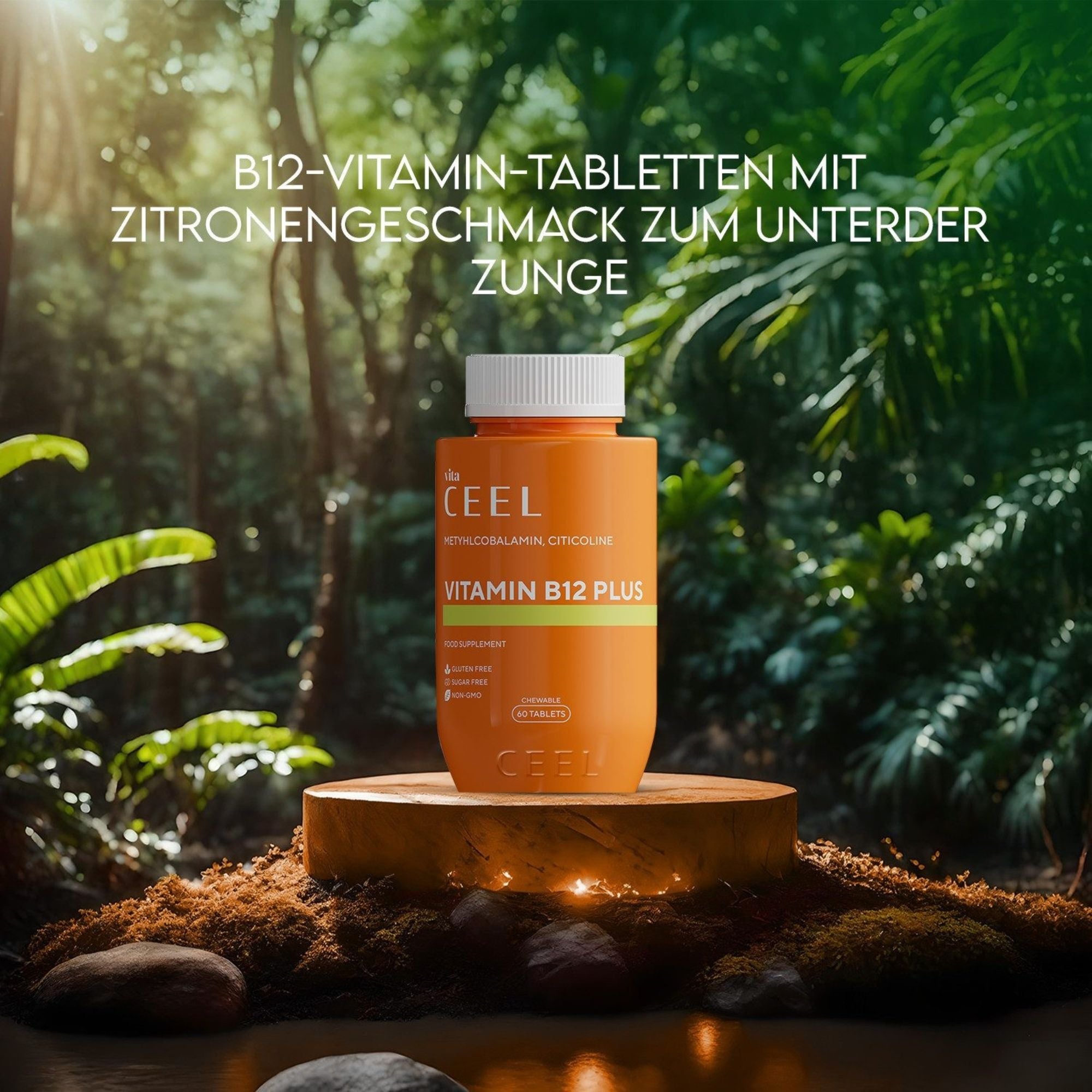 Vita Ceel Vitamin B12 Plus ist ein Nahrungsergänzungsmittel in Form von Kautabletten mit Metilkobalamin (aktiver Form von Vitamin B12) und Citicolin (CDP‑Cholin). Dieses Produkt unterstützt den täglichen Bedarf an Vitamin B12 und kann bequem in den Alltag integriert werden. Es ist für Erwachsene geeignet und bietet eine einfache Anwendung ohne Wasser.