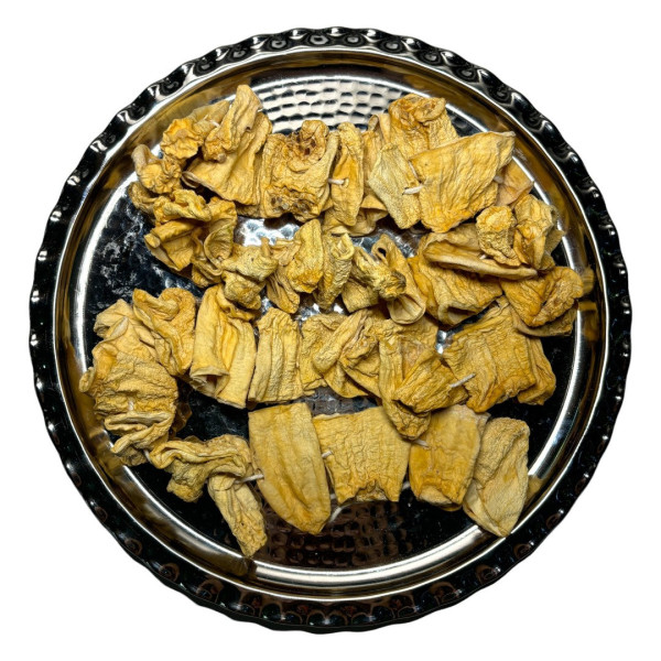 Getrockneter Kürbis ist eine Form von Gemüsekonserve, die durch das Schneiden von Kürbis in dünne Scheiben und anschließendes Trocknen an der Sonne oder im Ofen hergestellt wird. Durch diesen Prozess verliert der Kürbis seinen Wassergehalt, wodurch sich das Aroma intensiviert. Dieses Produkt ist besonders im Winter beliebt und kann lange gelagert werden.