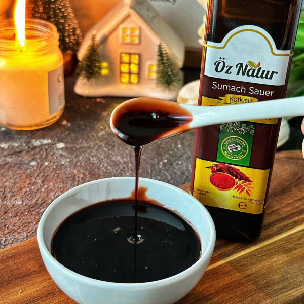 Entdecken Sie unseren hausgemachten Sumach Sauer aus Antep. Sumak Ekşisi bietet eine erfrischende, saure Note, ideal zum Verfeinern von Salaten, Fleischgerichten und Saucen. Erleben Sie den authentischen Geschmack und die hohe Qualität dieses traditionellen Gewürzes.