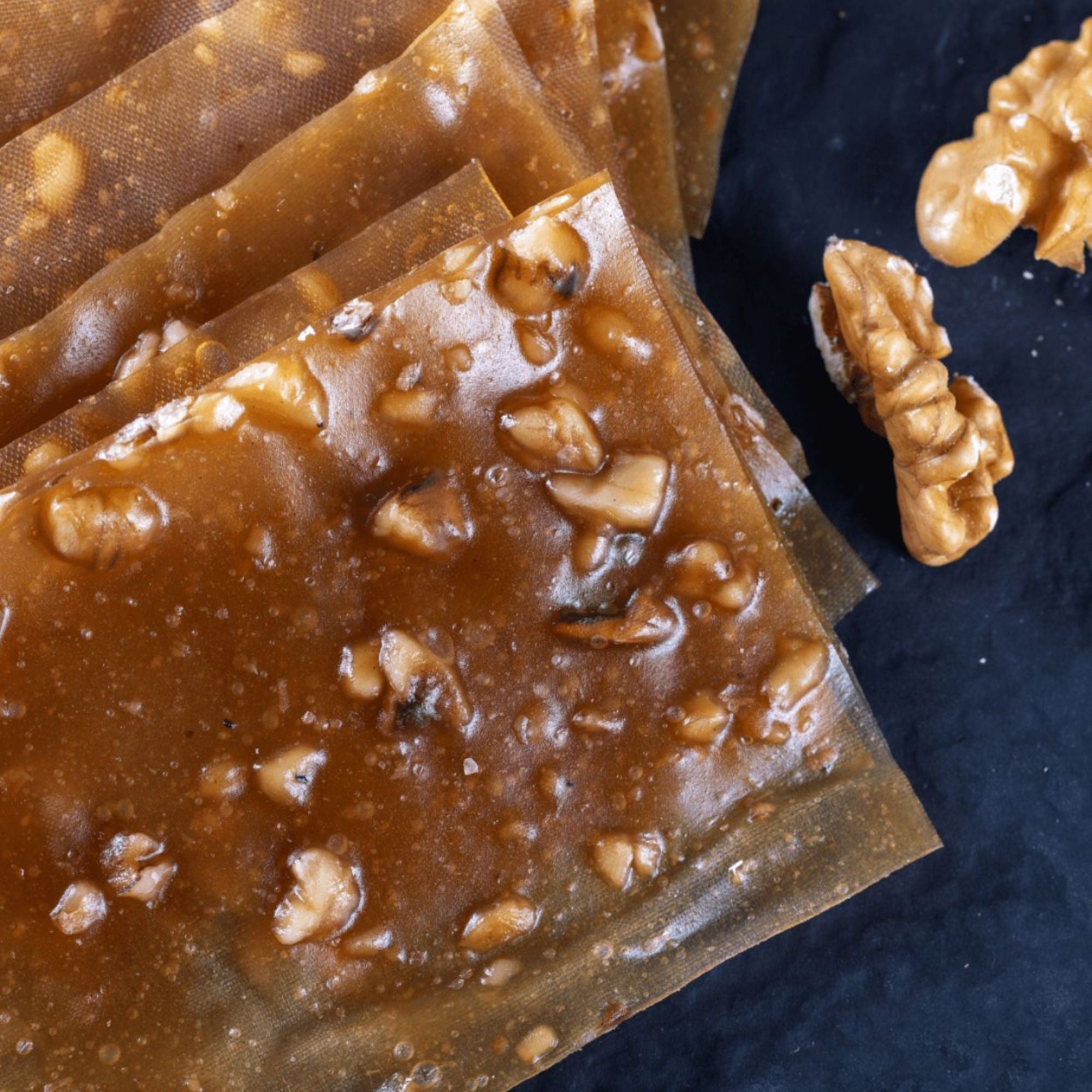Unser Pestil Köme mit Walnüssen ist eine traditionelle türkische Süßigkeit, die aus getrocknetem Fruchtleder und knackigen Walnüssen hergestellt wird.