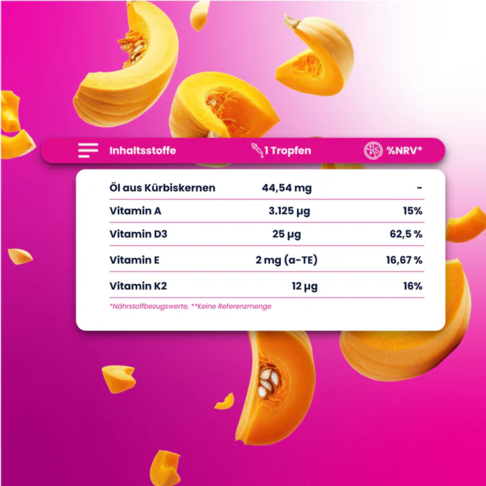 Kürbiskernöl, D-Alpha-Tocopherol, Retinylpalmitat, Menaquinon 4, Cholecalciferol