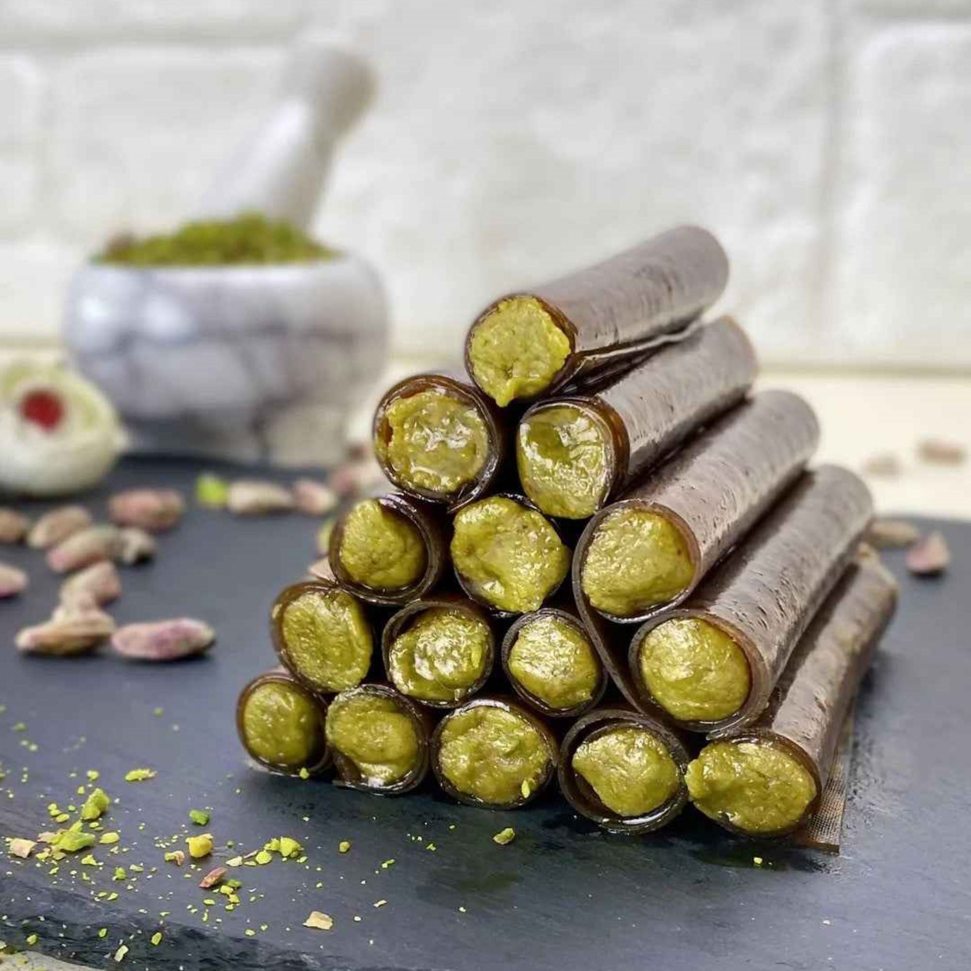 Erleben Sie die Sultan Pistazienrolle – eine traditionelle, gerollte Spezialität mit feinsten Antep-Pistazien und sorgfältig ausgewählten Zutaten. Diese Köstlichkeit vereint authentische Aromen zu einem harmonischen Genusserlebnis.