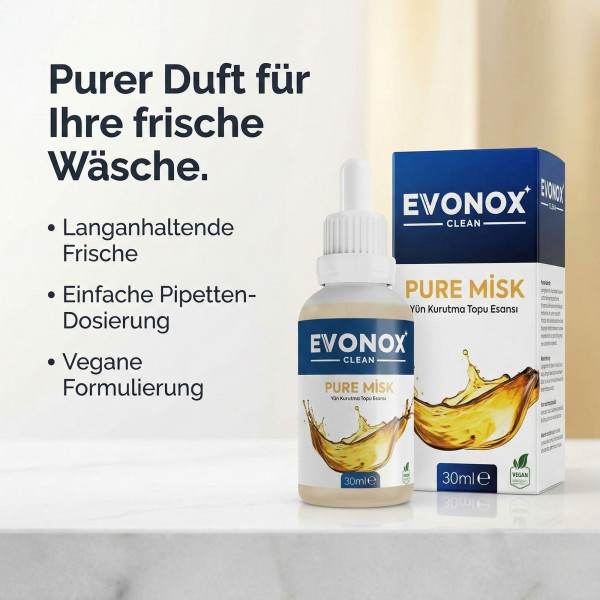 Produktinformationen "Evonox Clean | Pure Misk Duftessenz für Wolltrocknerbälle 30ml"