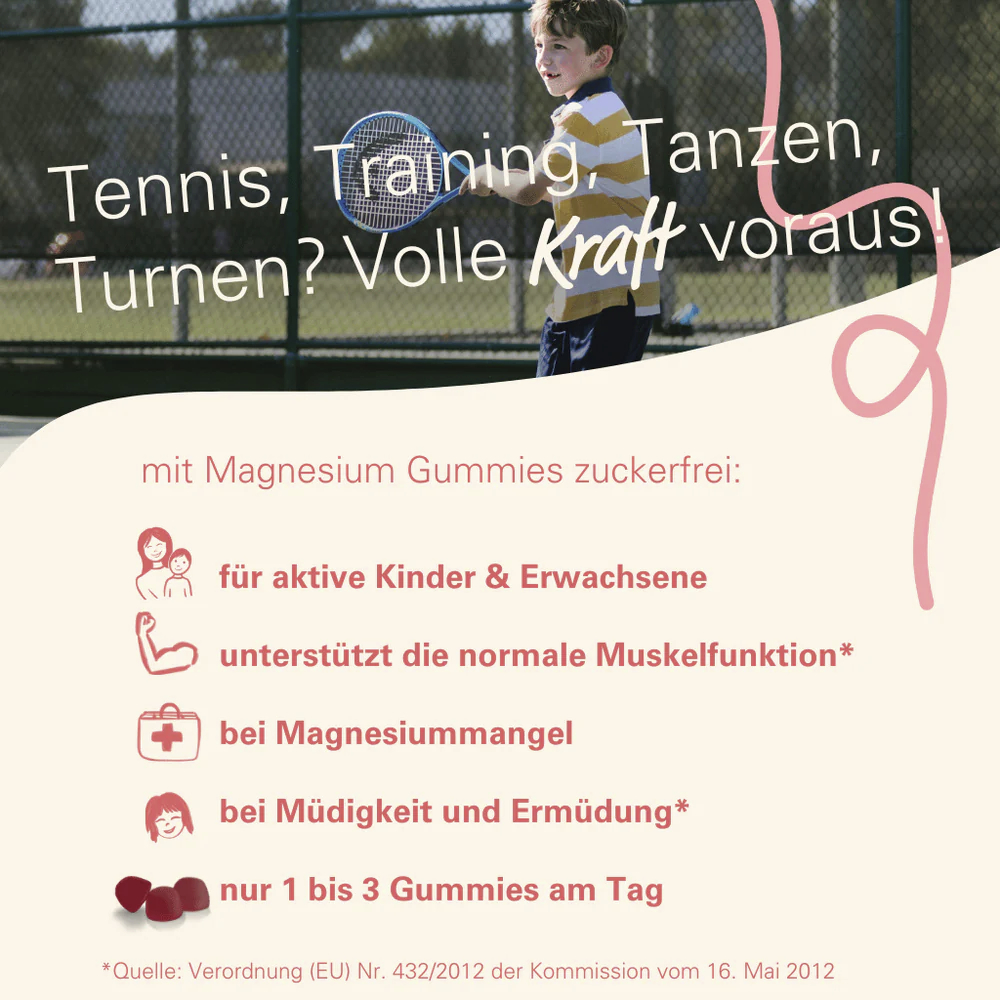 Magnesium Gummies bieten eine einfache Möglichkeit, Magnesium in den Alltag zu integrieren. Sie liefern 300 mg Magnesium pro Portion aus Magnesiumcitrat in praktischer Gummiform.