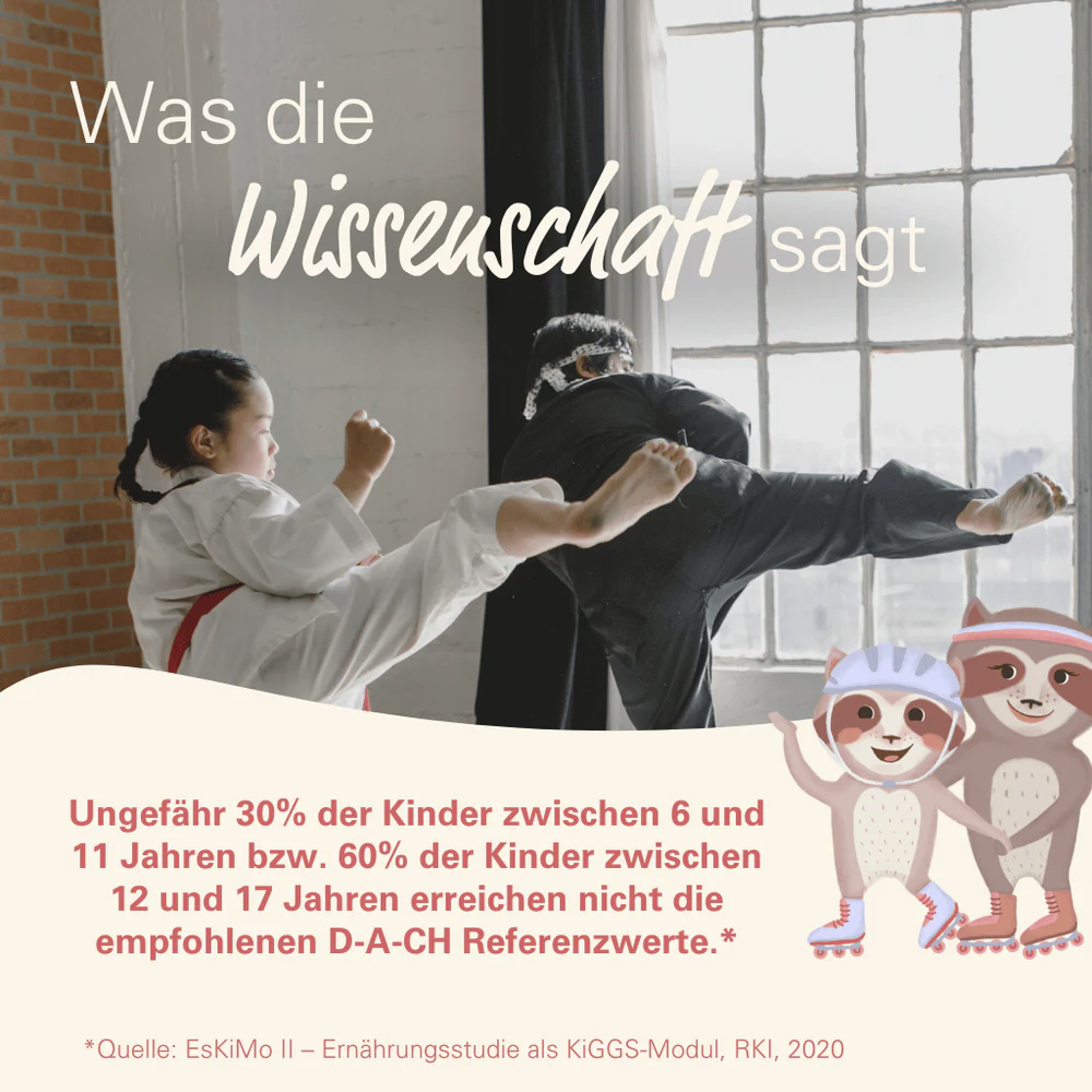 Je nach Alter 1–3 Gummies täglich verzehren.