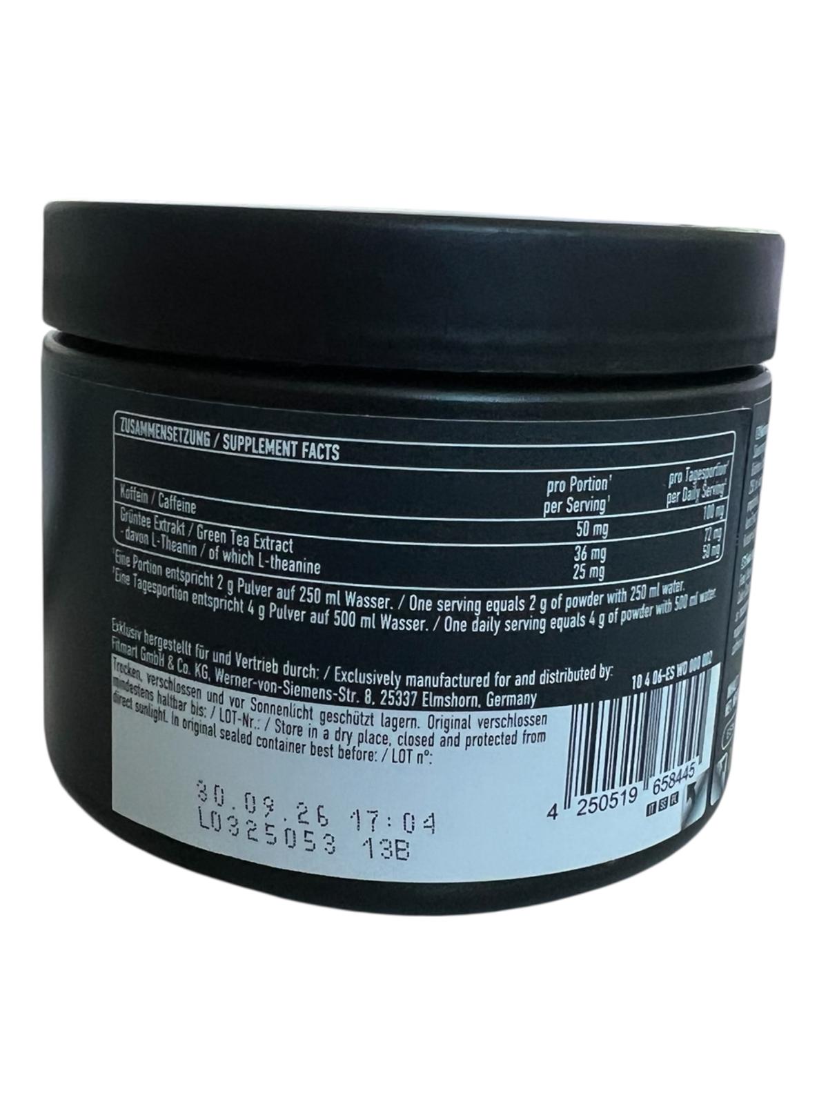 Nährwertangaben: Nährstoffe / Zusammensetzung Pro Portion Koffein 50 mg Grüntee-Extrakt 35,7 mg davon L-Theanin 25 mg