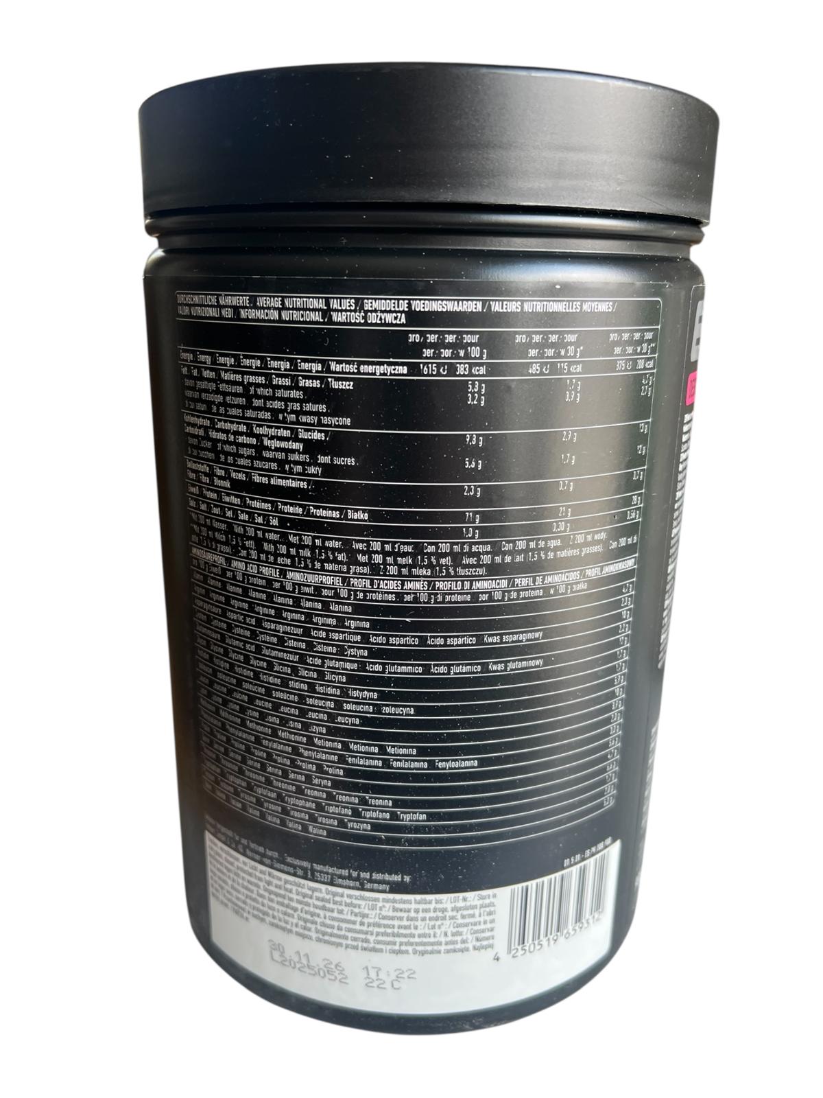 Dank des hohen Whey Isolat-Anteils, der sich je nach Geschmack bis zu 45 % steigert, beinhaltet es zusätzlich viele biologisch aktive Molkenprotein-Fraktionen wie Lactoferrin, Immunoglobuline und Makropeptide, die die Nährstoffversorgung und Regeneration optimal fördern. Unterstützt wird das selbstverständlich auch durch die hohen Anteile an essentiellen Aminosäuren (EAA-Anteil 48 %) und verzweigtkettigen Aminosäuren (BCAA-Anteil 23 %).