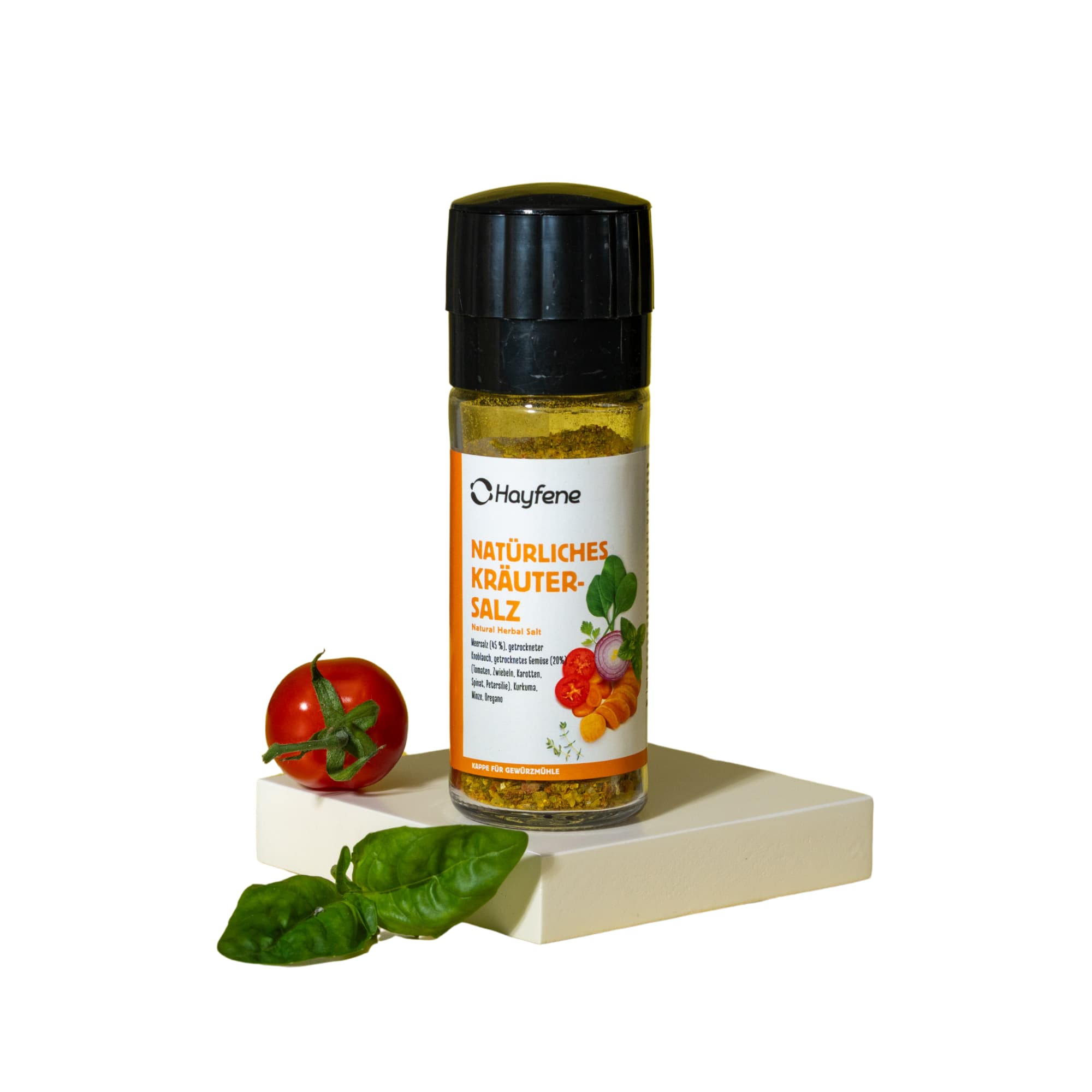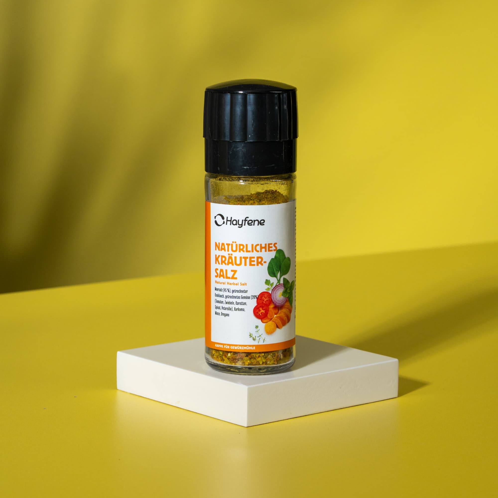 Entdecken Sie das aromatische Hayfene Natürliches Kräuter‑Salz – eine ausgewogene Mischung aus Meersalz, getrocknetem Gemüse und Kräutern.