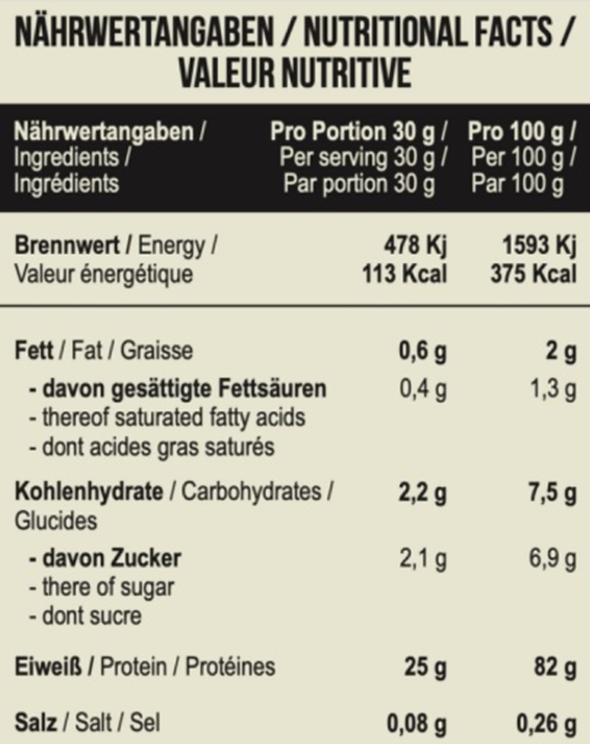 mizellares ?asein, Kakaopulver, Schokoladenaroma, Mandelaroma, Su¨ßungsmittel (Sucralose).