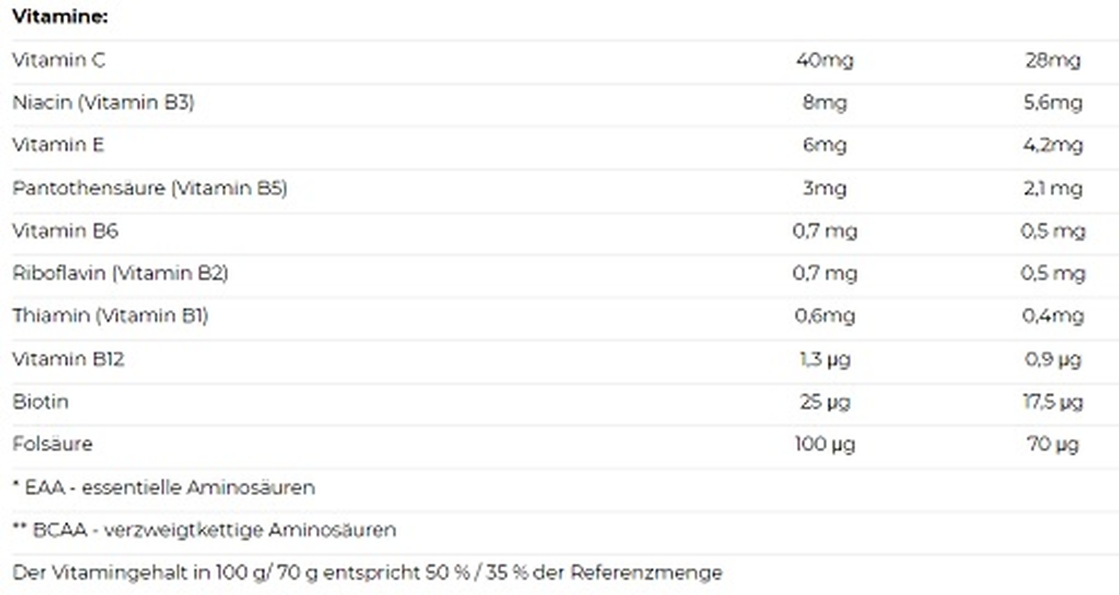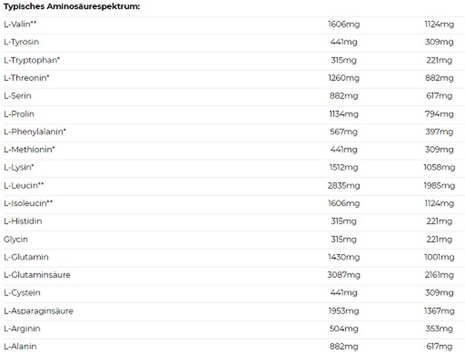• 4,2 mg BCAA erhalten