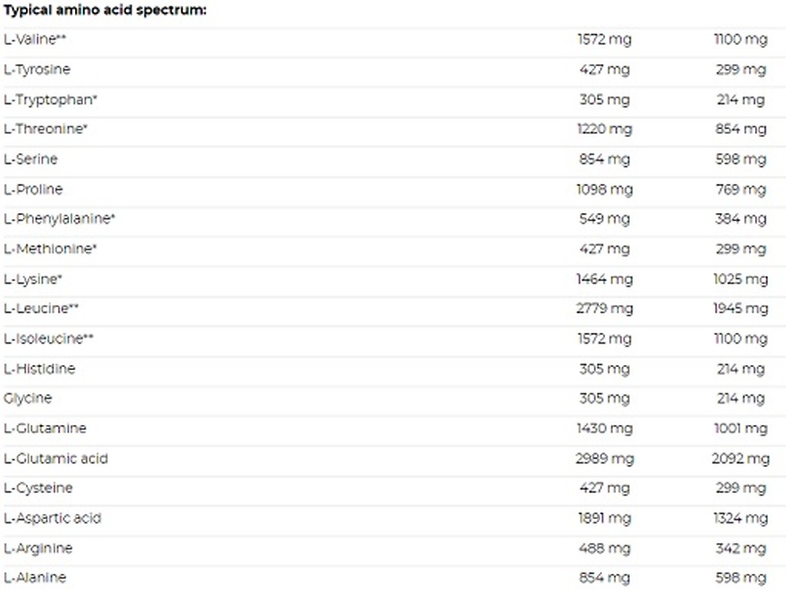 - 4,2 mg BCAA zur Erhaltung
