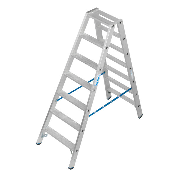 Entwickelt für professionelle Einsatzzwecke, bietet diese Aluminium- Stufen-Doppelleiter höchste Standsicherheit im täglichen, harten Arbeitseinsatz – vor allem an rutschigen, schmierigen Arbeitsplätzen.