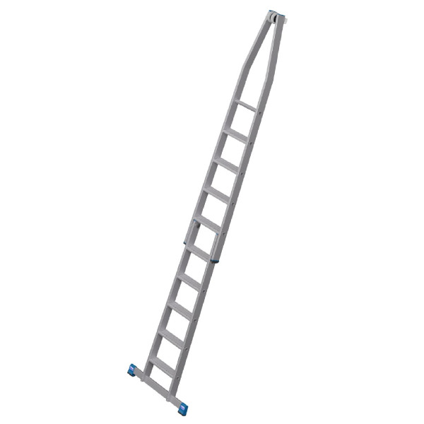 Leicht verstaubares Aluminium-Steckleitern-System für unterschiedliche Arbeitshöhen. Die verwendeten R13-Stufen erlauben eine TRBS 2121-2 konforme Anwendung als Arbeitsplatz.
