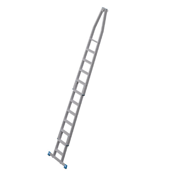 Leicht verstaubares Aluminium-Steckleitern-System für unterschiedliche Arbeitshöhen. Die verwendeten R13-Stufen erlauben eine TRBS 2121-2 konforme Anwendung als Arbeitsplatz.