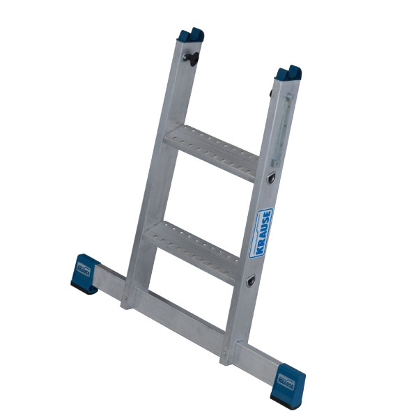 Leicht verstaubares Aluminium-Steckleitern-Einzelteil zur Kombination als bis zu 4-teiligem Satz für unterschiedliche Arbeitshöhen. Die verwendeten Stufen erlauben eine TRBS 2121-2 konforme Anwendung als Arbeitsplatz.