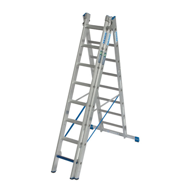 - Dreiteilige Aluminium-Vielzweckleiter mit Stufen/Sprossen-Kombination für TRBS 2121-2-konforme Anwendung.