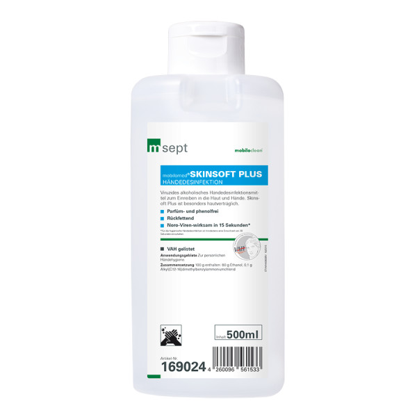 - Besonders hautverträglich ist Skinsoft Plus durch die rückfettenden Eigenschaften, weiterhin ist es phenol-, farbstoff- und parfümfrei.