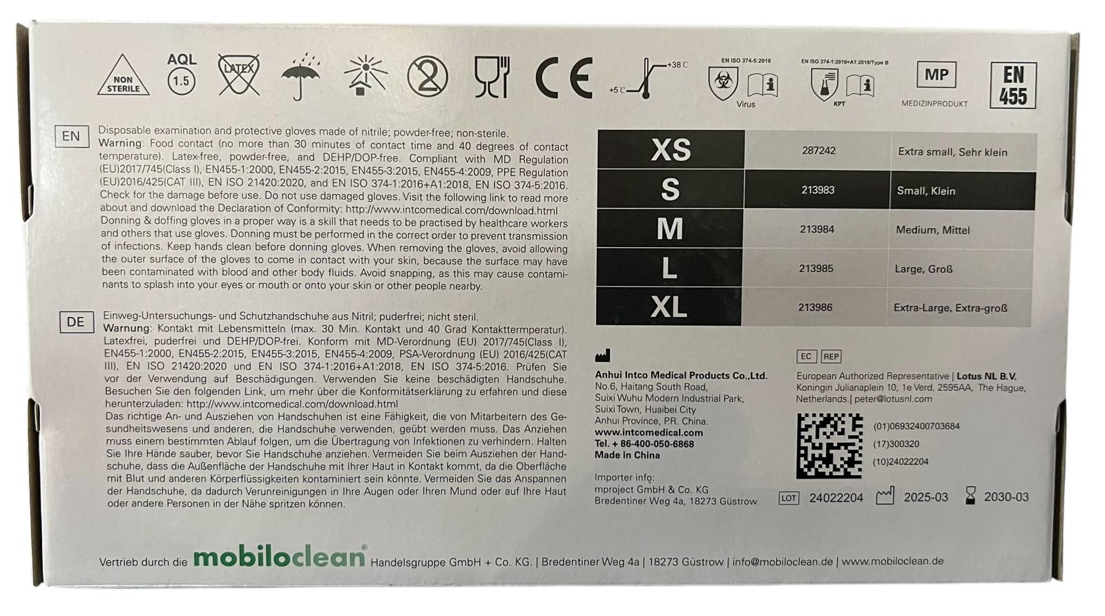 - AQL 1.5, CE-Zeichen - EN 455, EN 374