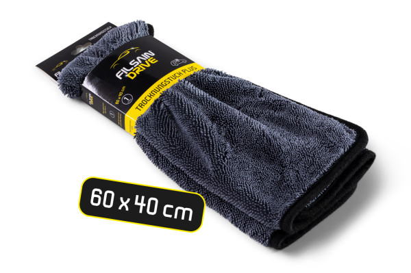 Das FILSAIN® Trocknungstuch PLUS hat ultrafeine Mikrofasern für Karosserieflächen und allgemeinen KFZ-Oberflächen, 480 Gramm pro Quadratmeter. Die Qualität eignet sich zur maximalen Wasseraufnahme und zum superschnellen und rückstandlosen Auftrocknen.