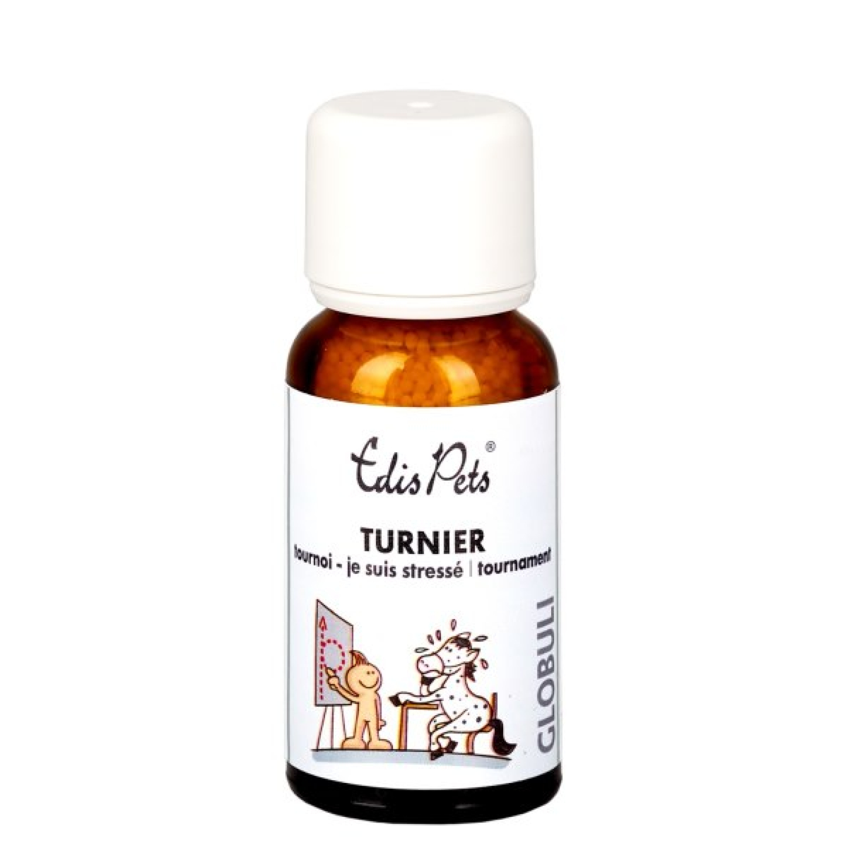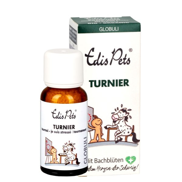Ihr Pferd könnte beim Training und bei Turnieren viel mehr leisten? Vor lauter Stress, Ungeduld oder Unruhe blockiert es sich aber immer wieder? Dann sind Edis Pets Globuli "Turnier" genau das Richtige. Feine Globuli mit bewährten Bio* Bachblüten. 100 % einfach und sicher anzuwenden.