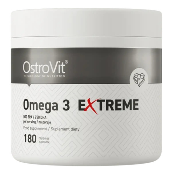 OstroVit Omega 3 Extreme liefert pro Portion (1 Kapsel) 1000 mg Fischöl mit 500 mg EPA und 250 mg DHA. Die Softgel-Kapseln sind leicht zu schlucken. Eine Packung enthält 180 Kapseln und reicht bei täglicher Einnahme für bis zu 6 Monate.