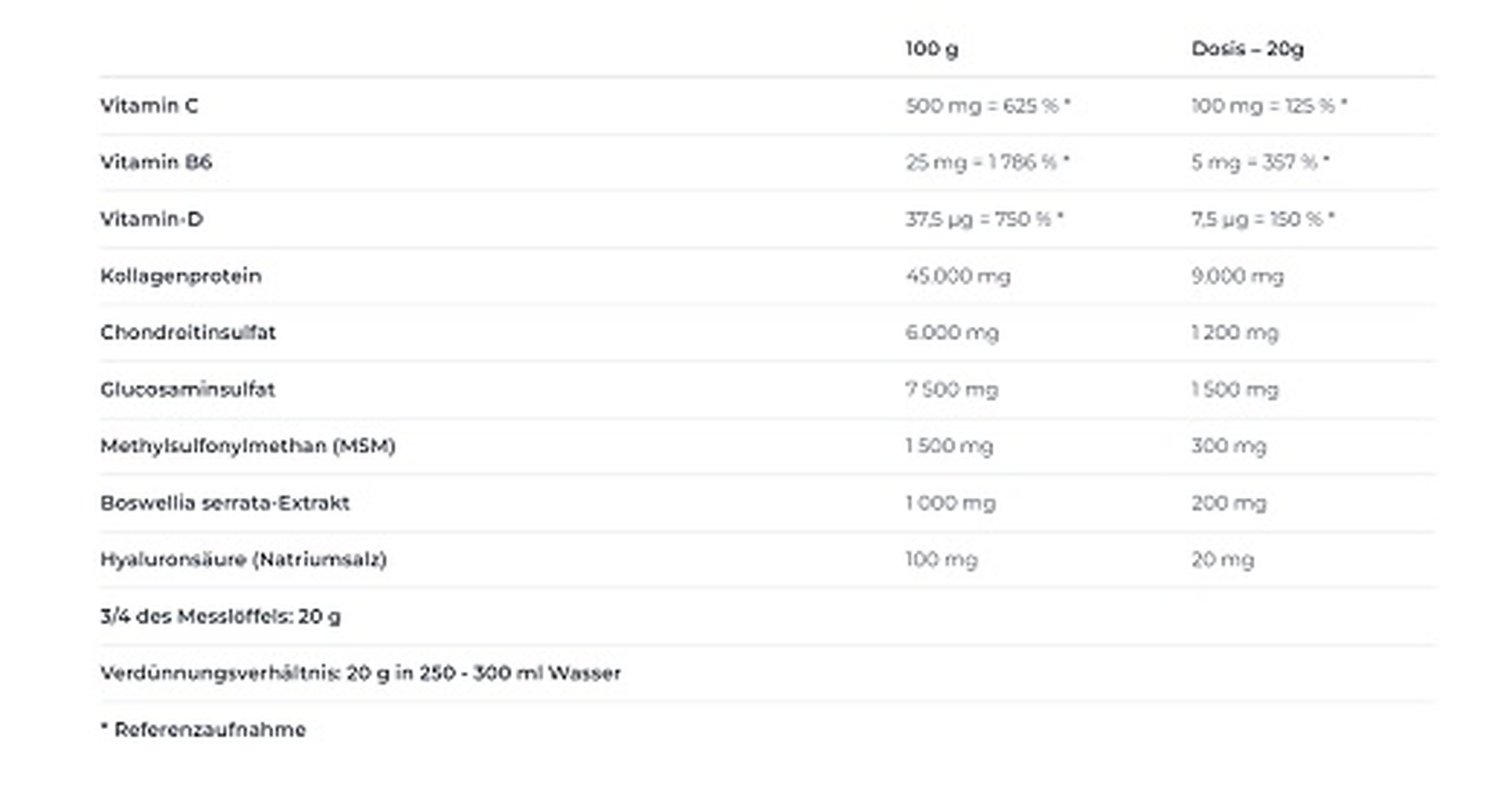 gewährleisten eine maximale synergetische Wirkung. Seine Formel basiert auf den neuesten Studien über funktionelle Substanzen zur Unterstützung des Bewegungsapparates.