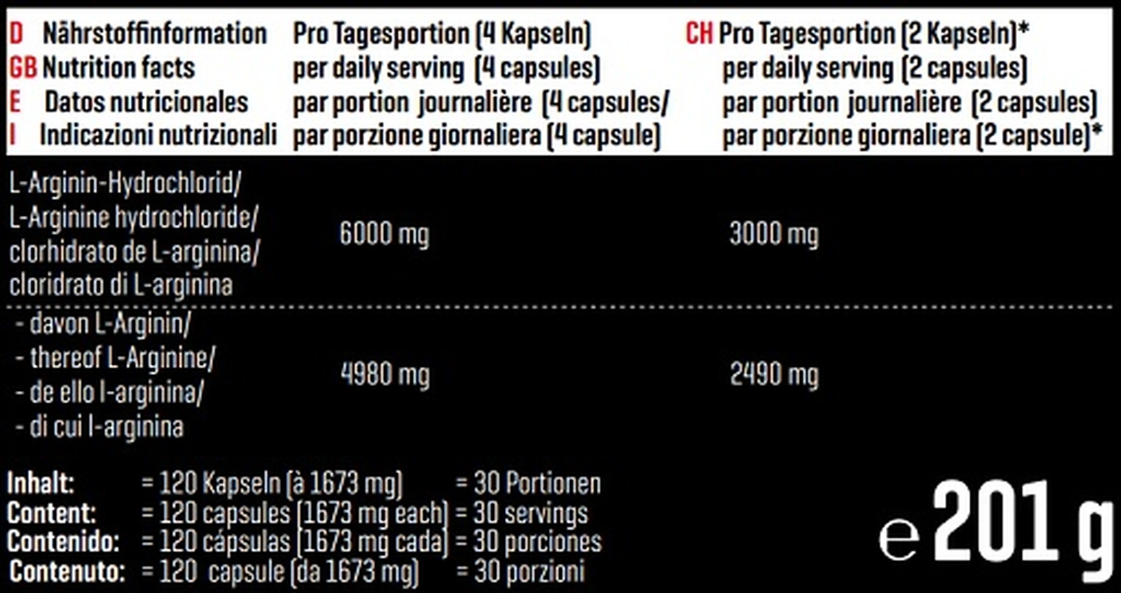 Bist du bereit für ein besseres Trainingsgefühl? Die Aminosäure L-Arginin ist der perfekte Helfer für neue Höchstleistungen während deiner Workouts. Durch die gefäßweitende Wirkung sorgt es für einen verbesserten Blutfluss und versorgt so deinen Körper und deine Muskeln mit mehr Nährstoffen. Das Resultat? Eine bessere Proteinzufuhr und ein stärkerer Pump-Effekt! Für deine höchsten Ansprüche haben wir vorgesorgt: deshalb gibt es das L-Arginine 1500 bei uns hochdosiert und in praktischen Kapseln – für maximale Bestleistungen!