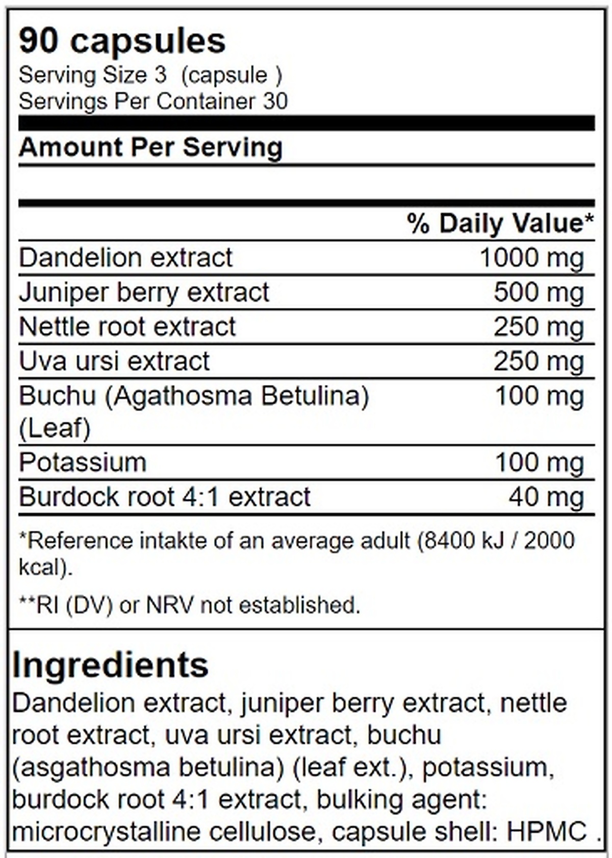 • Fördert ein gesundes Flüssigkeitsgleichgewicht und unterstützt eine gesunde Funktion der Nieren und des Harntrakts