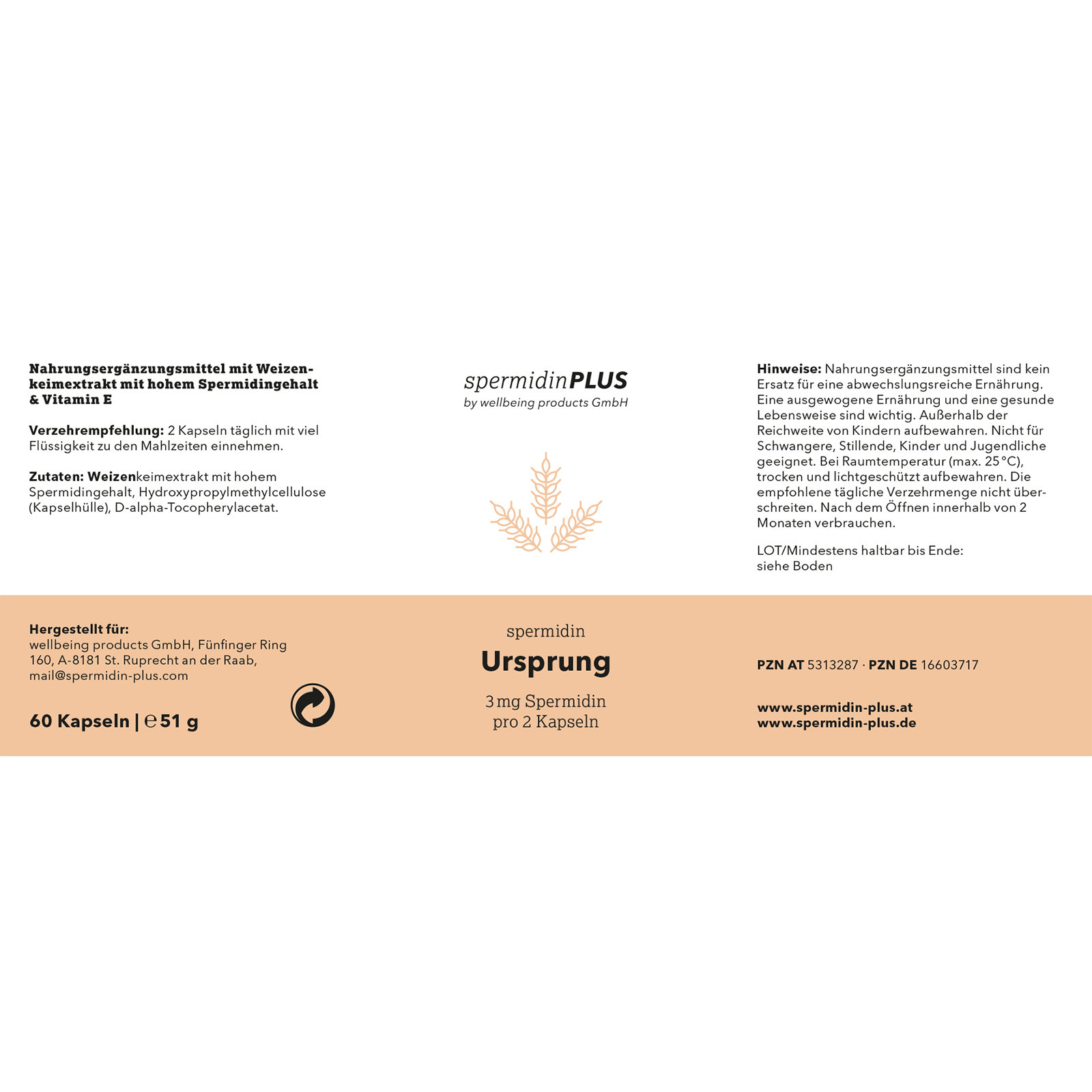 - Mit mehr als 600 mg Weizenkeimlingspulver, reich an natürlichem Spermidin