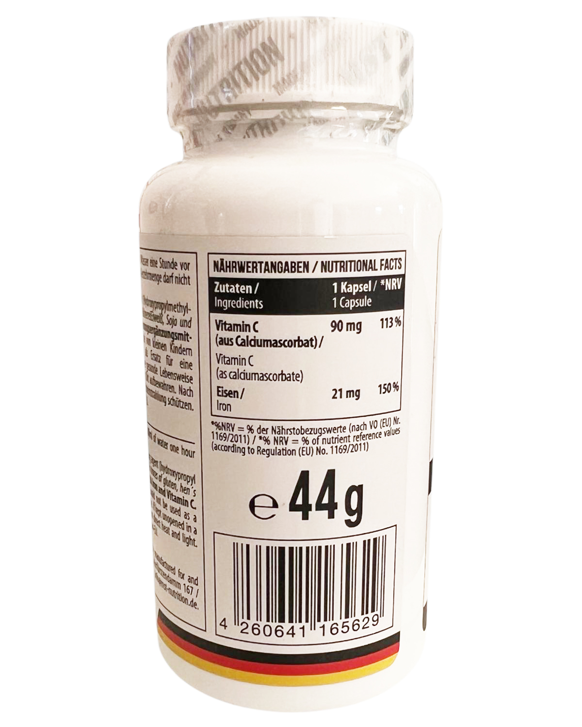 Die Kapseln sind einfach einzunehmen und eignen sich ideal für Personen, die ihren Eisenbedarf ergänzen möchten. Jede Dose enthält 60 Kapseln, die jeweils eine genau dosierte Menge an Eisen enthalten.