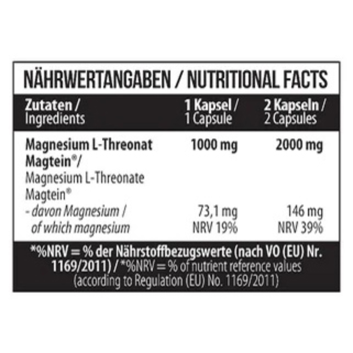 Pro Kapsel: Magnesium L-Threonat (Magtein®): 1000 mg (davon Magnesium: 73,1 mg)