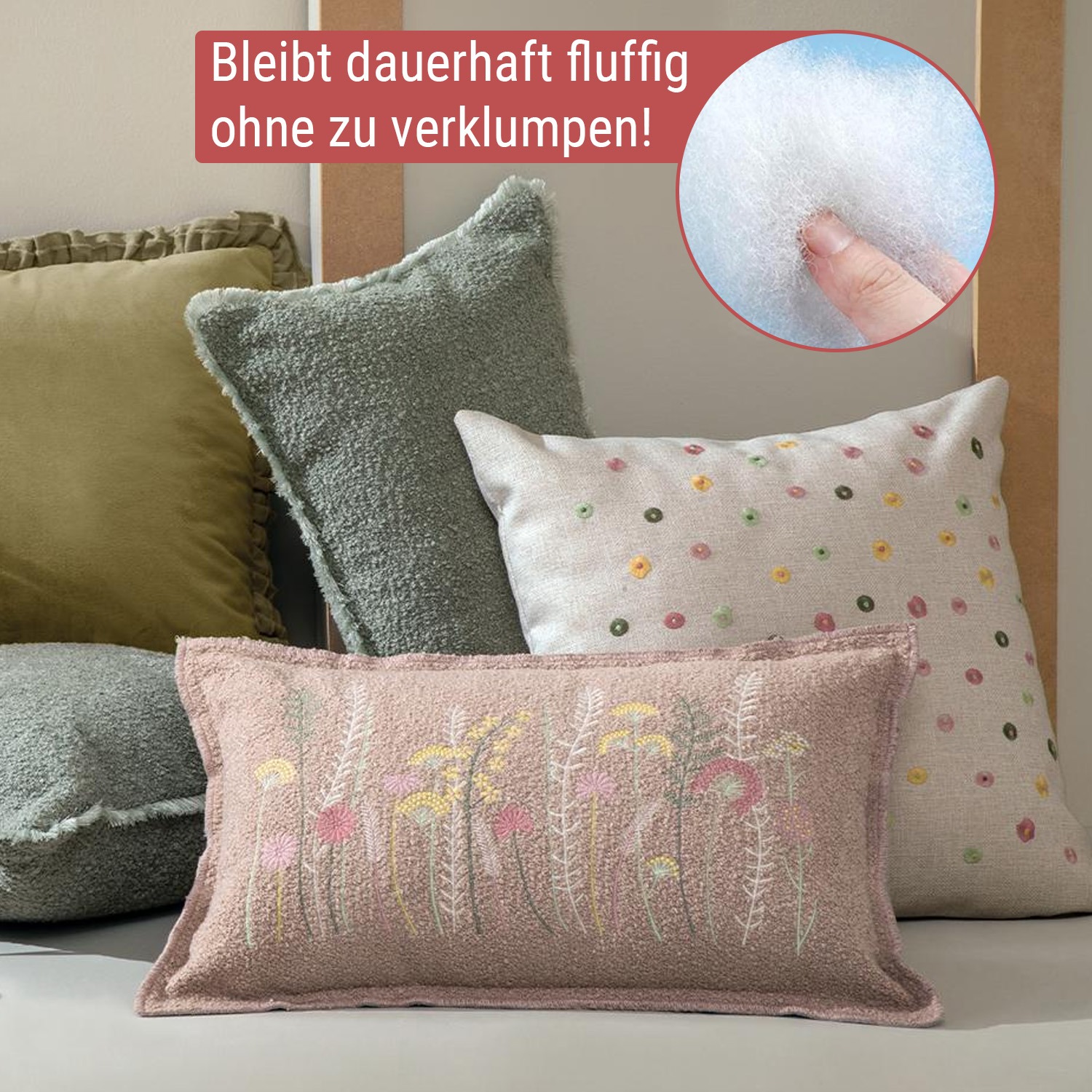 Ob als Kissenfüllung, Bastelwatte oder Stopfmaterial für Kissen & Stofftiere, die flauschige Struktur passt sich jeder Form an und bleibt dauerhaft voluminös.