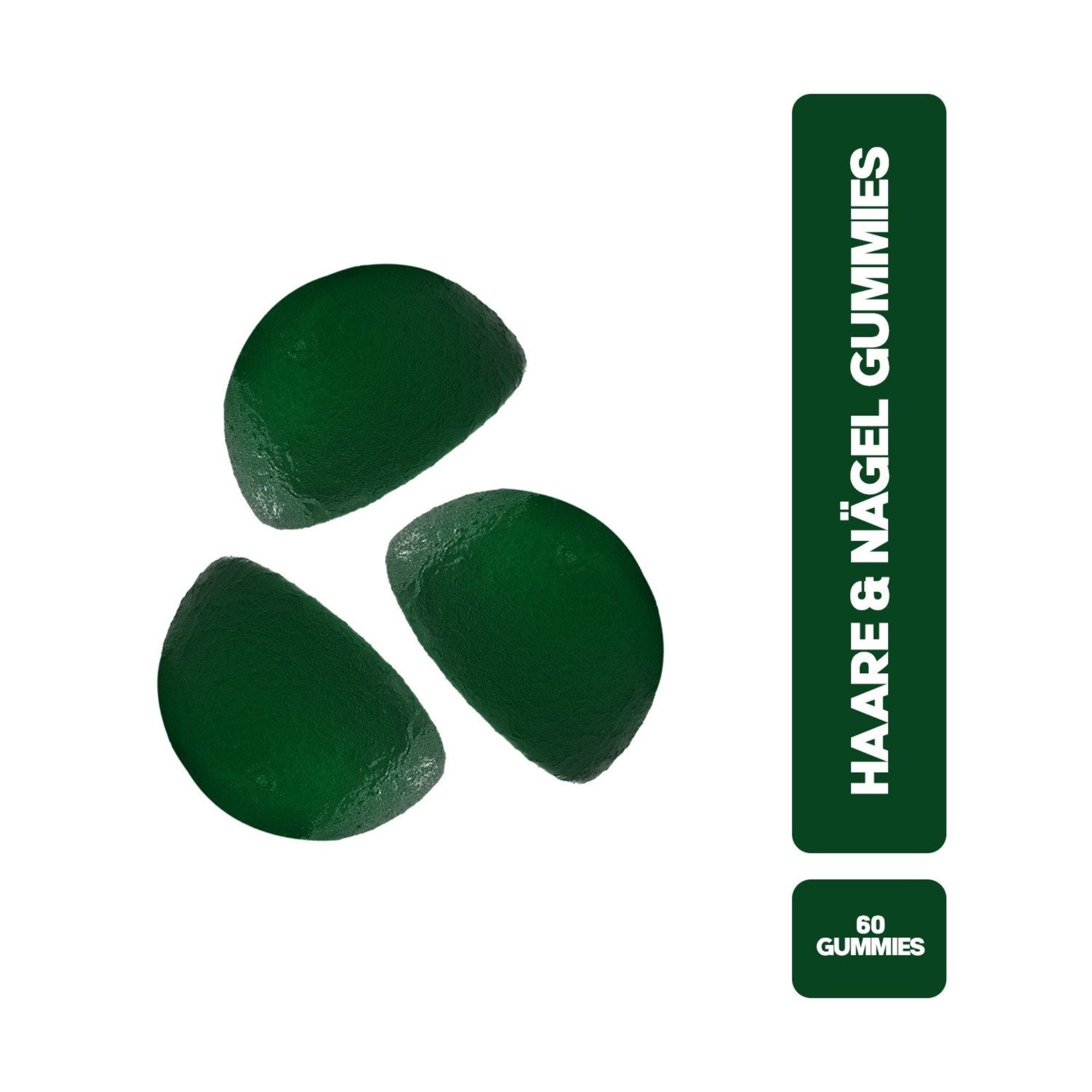 Zucker, Glukosesirup, Pektin, Wasser, Säureregulatoren: Zitronensäure und Apfelsäure, L-Methionin, Schachtelhalmextrakt, Traubenkernextrakt, Di-alpha-Tocopherylacetat, natürliches Apfelaroma, Zinkcitrat, D-Biotin, D-Panthenol, Calcium, Farbstoff: Chlorophyll, Kupfersulfat, Cholecalciferol, Pyridoxin, Pyridoxinhydrochlorid, Sprengstoffe: Bienenwachs, Carnaubawachs und Pflanzenöl (Palm), Pteroylmonoglutaminsäure, Cyanocobalamin.