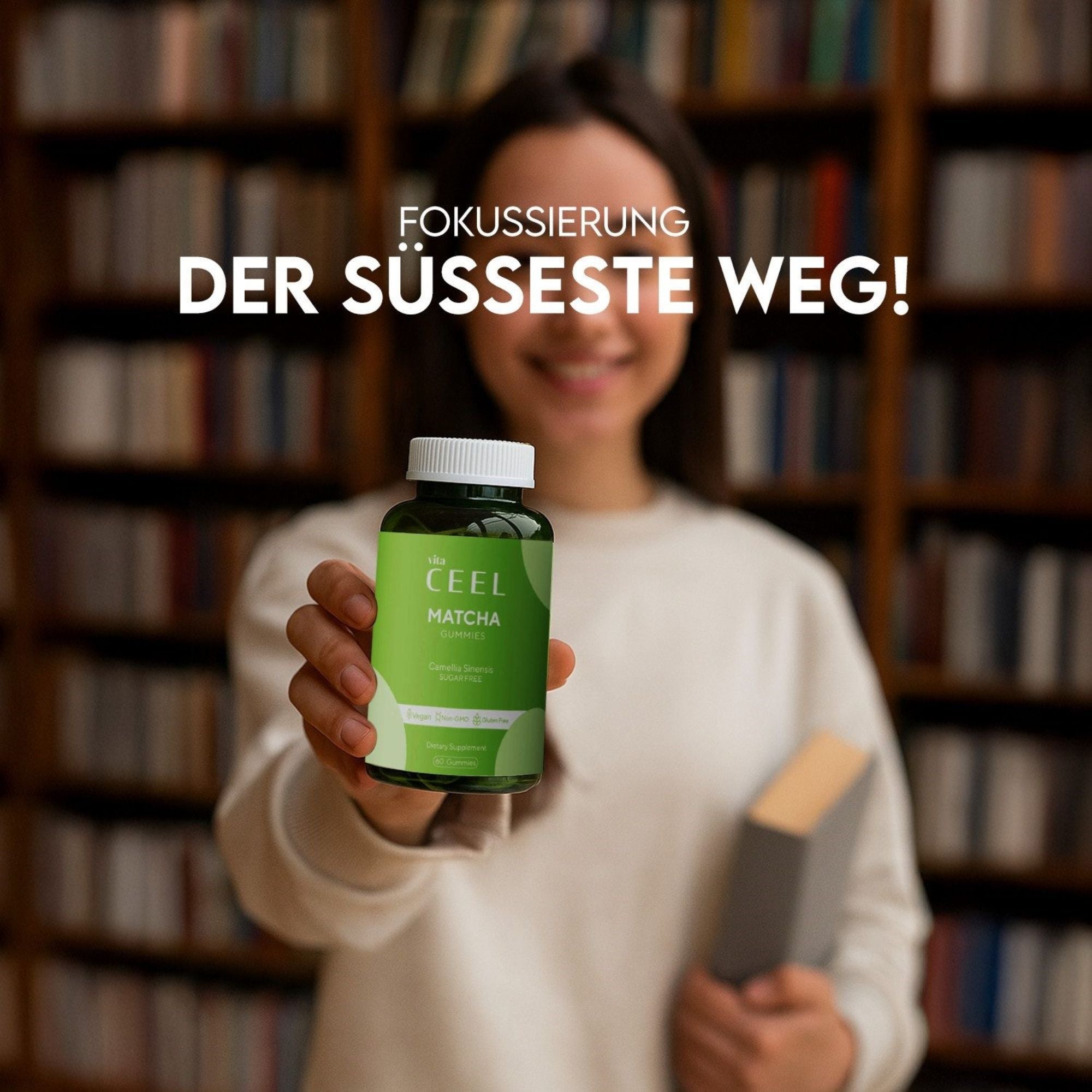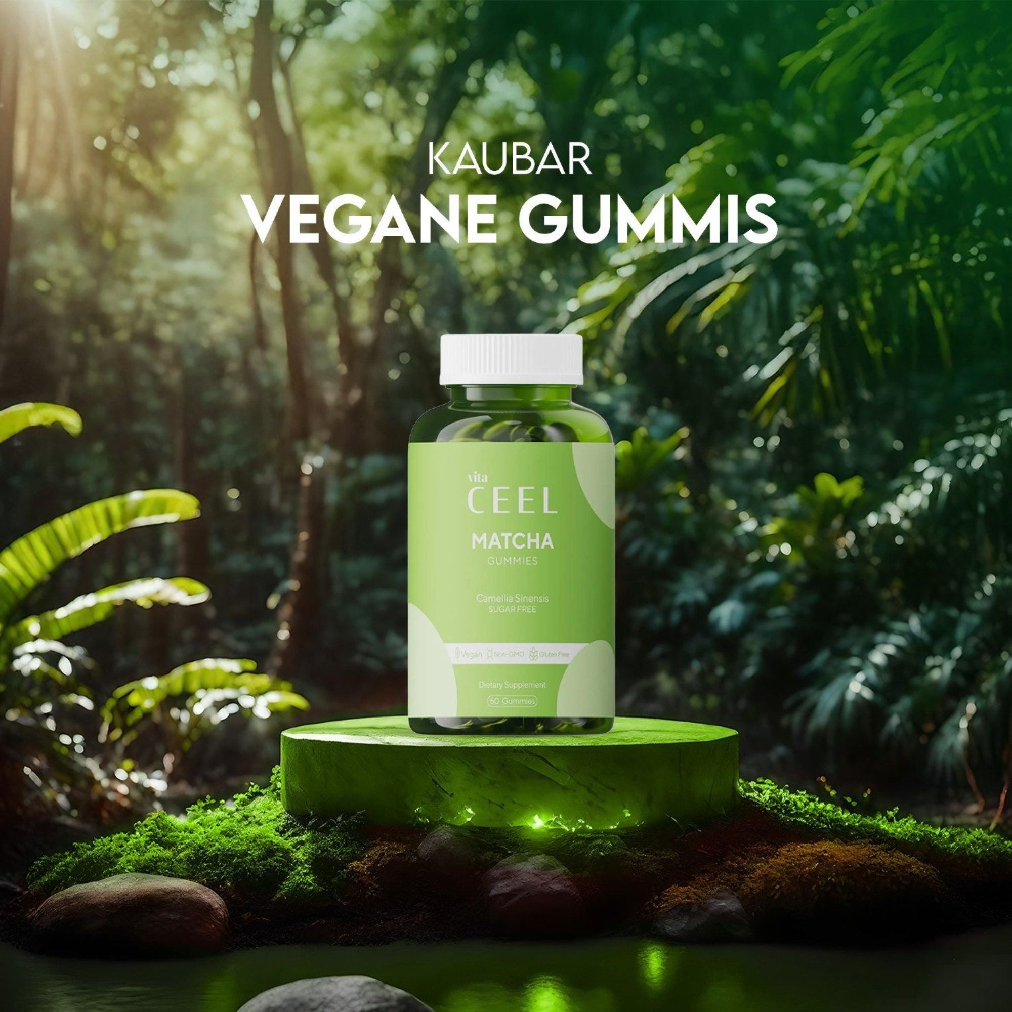 Vita Ceel Matcha Gummies enthalten Grüntee-Extrakt (Camellia Sinensis) in einer praktischen, kaubaren Form. Die Rezeptur ist frei von Zucker, Gluten und tierischen Inhaltsstoffen.